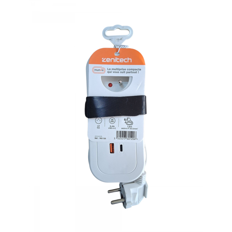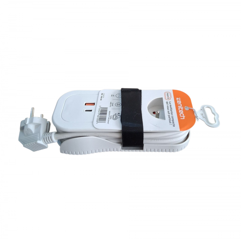 Multiprise Portable 2x16A 2P+T Serie NEOSOS + USB Cable 3g1 1.6m