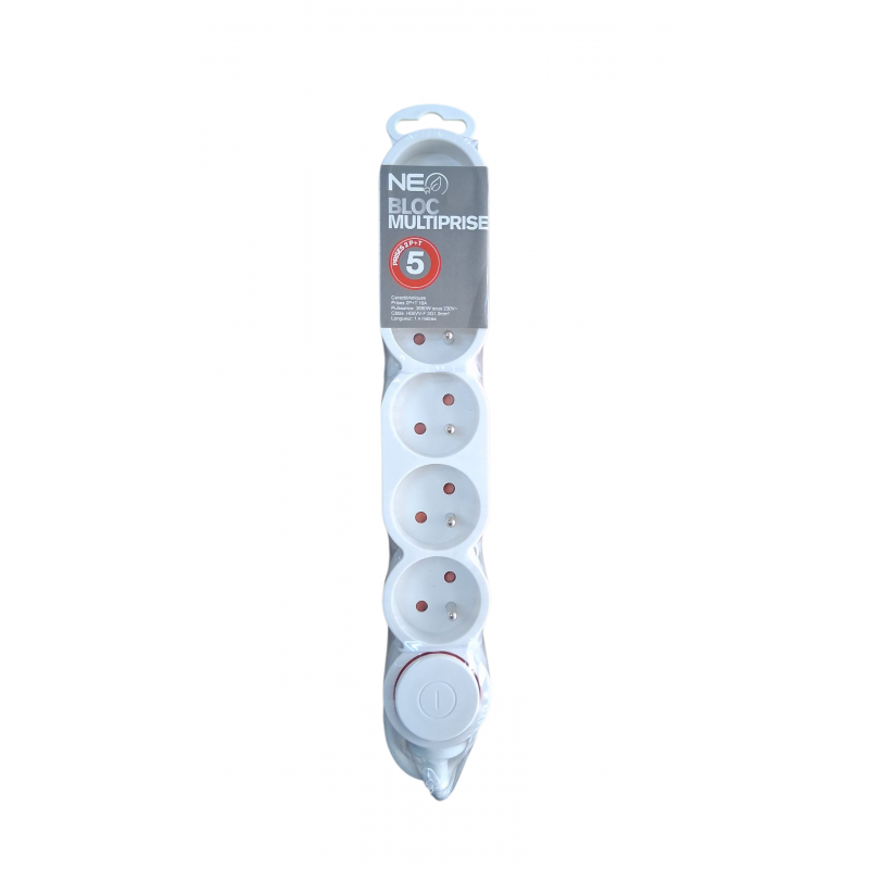 Rallonge Multiprise 5x2P+T 16A Serie NEOPLUG + Inter Cable 3G1 1.4m