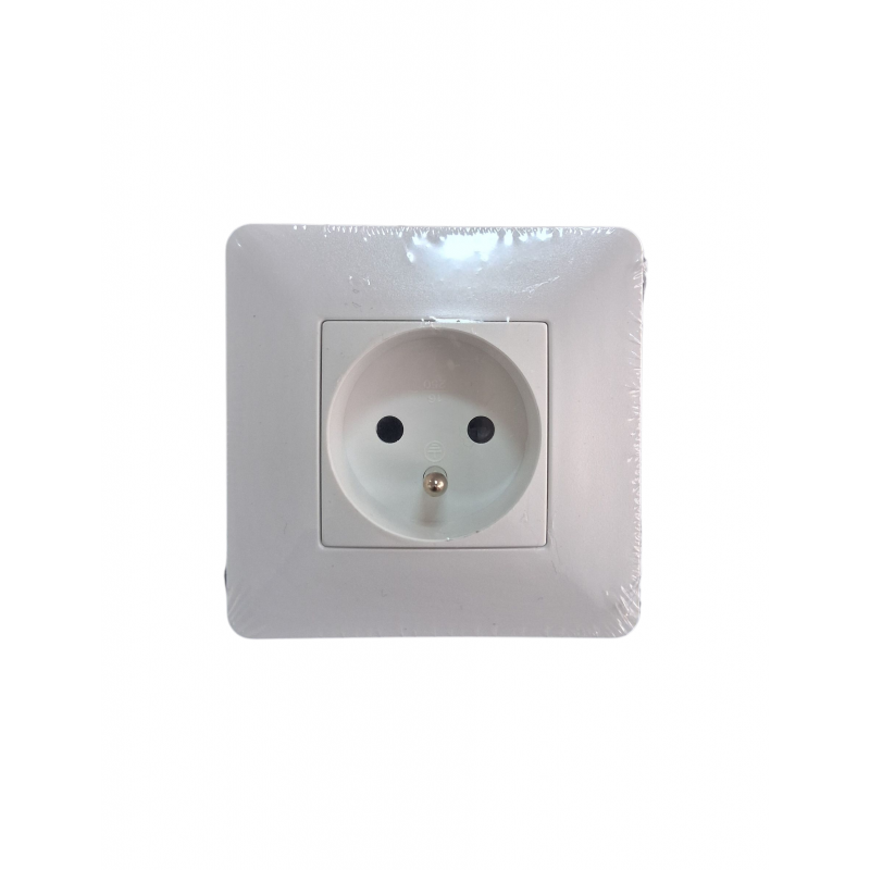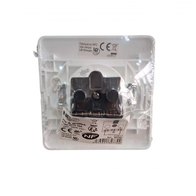 Prise 2P+T 16A Blanc + Plaque et Support