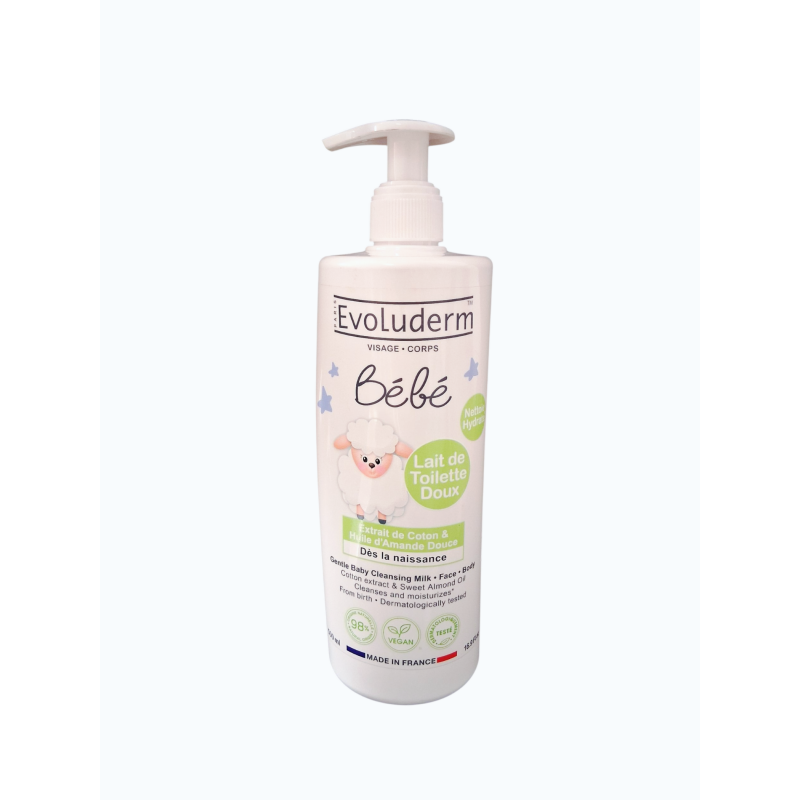 Lait de Toilette Doux BEBE Coton & Amande 500ML EVOLUDERM